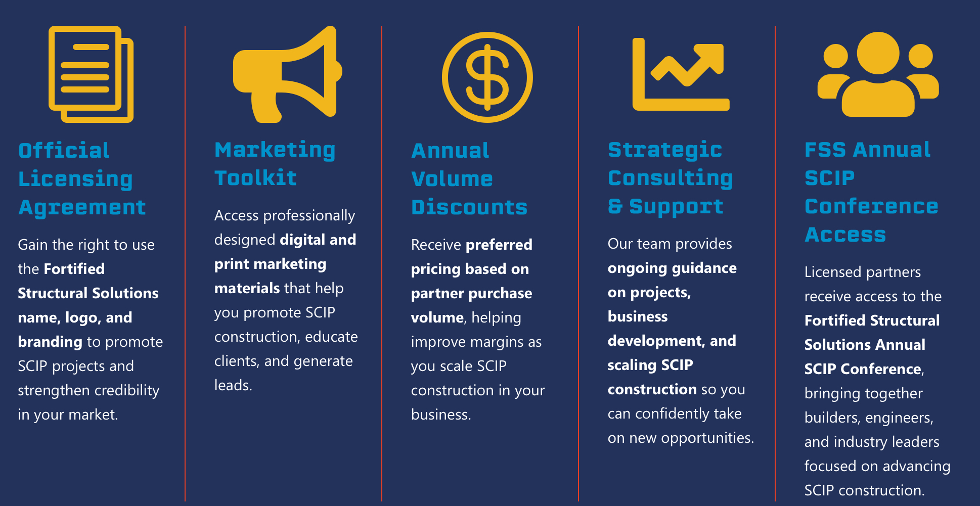 Receive preferred pricing based on partner purchase volume, helping improve margins as you scale SCIP construction in your business.
