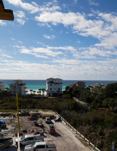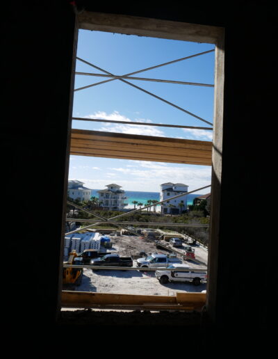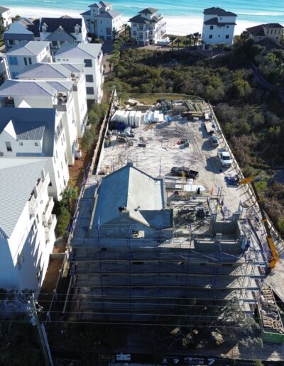 The structure’s gray shell is nearing completion. Our team has fully installed the roof panels, and the final concrete applications are now underway, shaping a resilient and energy-efficient home designed to withstand coastal conditions. This shell sets the foundation for a truly exceptional residence and reflects the attention to quality and detail that defines the Tides 30A project.